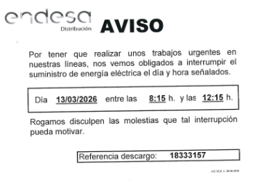 Os adjunto el aviso de Endesa. ¡Gracias por vuestra colaboración!